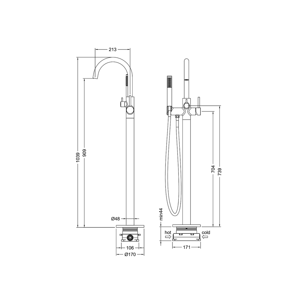 Смеситель напольный для ванны с душем Timo Saona 2310/19Y-CR розовое золото