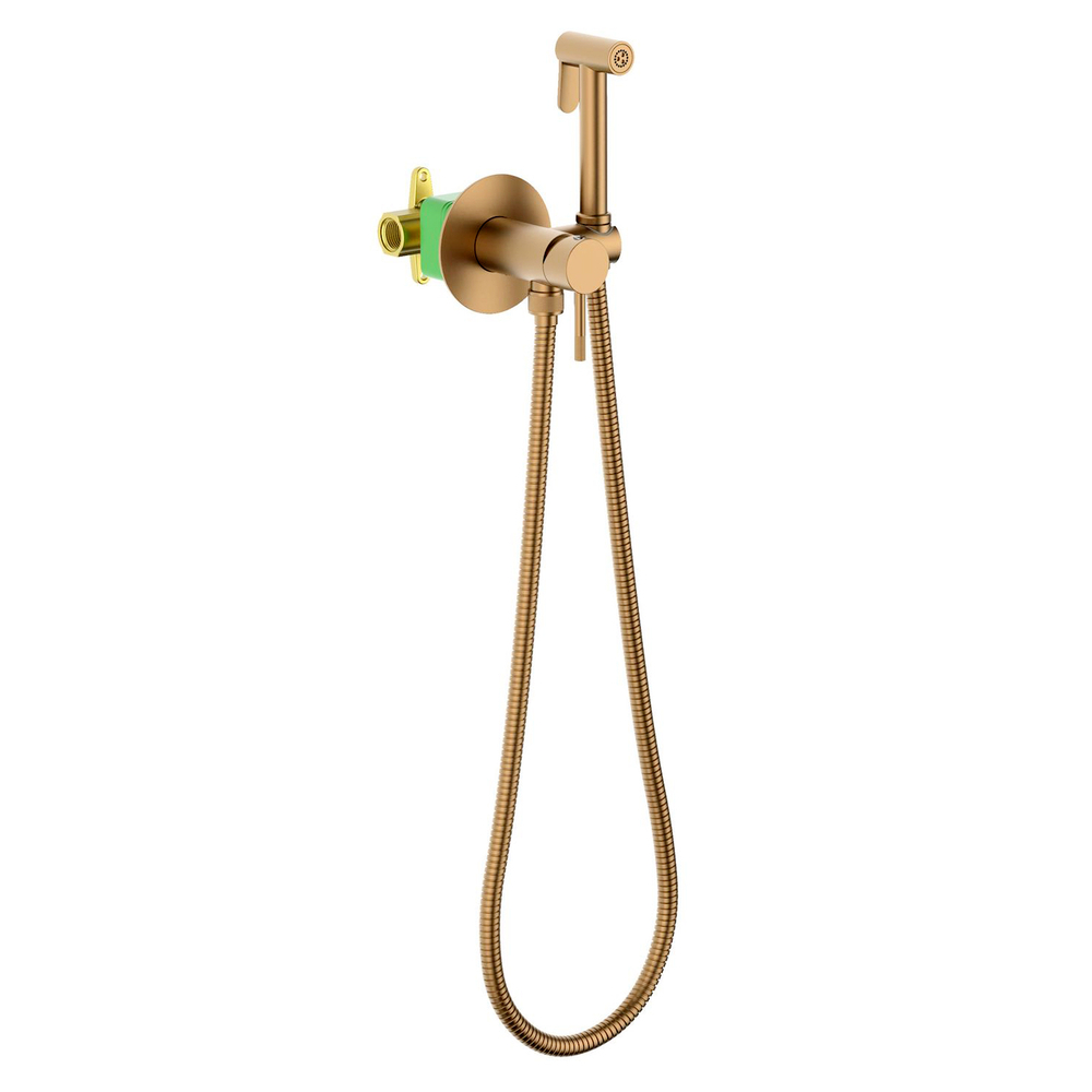 Цвет "розовое золото" является маркером стиля и элегантности. Мягкий оттенок придает дизайну ванной комнаты утонченности и сдержанности. Встраиваемый смеситель с гигиеническим душем Timo Saona 2338 предназначен для монтажа в твердой или полой стене. Основной задачей данной модели является: экономия места (установка чаши для биде занимает достаточно много места и к тому же затратнее). Все коммуникации, крепления и механизмы спрятаны в стену и закрыты декоративной накладкой, снаружи находится только рычаг управления смесителем и держатель гигиенической лейки с подключеним шланга, такая модель отлично сочетается с инсталляцией для унитаза. Длины шланга 1,2 метра хватает для решения гигиенических задач. Можно также использовать например, для мытья собаки после прогулки или наполнения ведра воды и т.д. Сложностей монтажа не возникает при установке смесителя опытным сантехником. Внимательно изучите инструкцию по монтажу и эксплуатации. Цвет "розовое золото" не капризен в уходе, на нем менее заметны загрязнения и мелкие царапины.