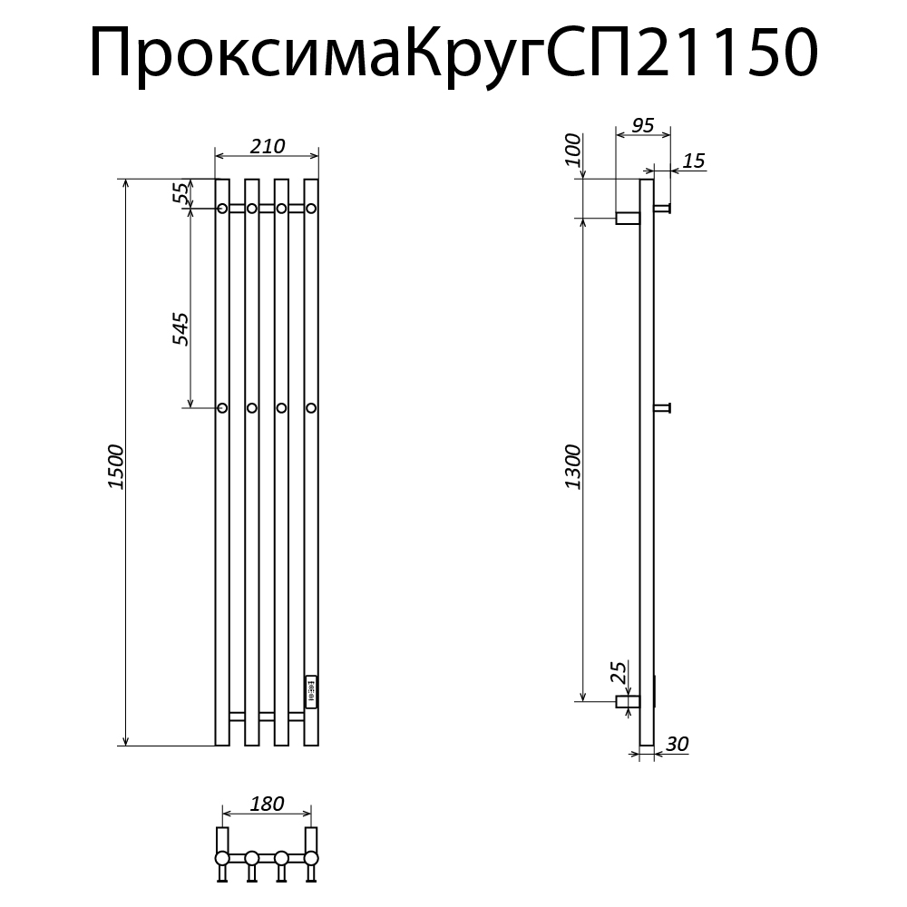 - Полотенцесушитель Проксима Круг (электро.) 21х150 (скр.монтаж, унив.подкл., Черный, Альтасан