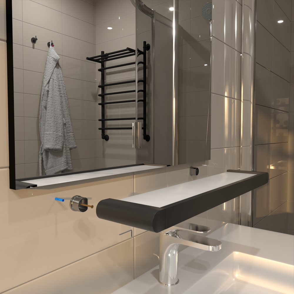 - Полочка прямая, коллекция ЛОТОС (ЛТ70ЧМ), 54см, стекло матовое, черный матовый, Альтасан